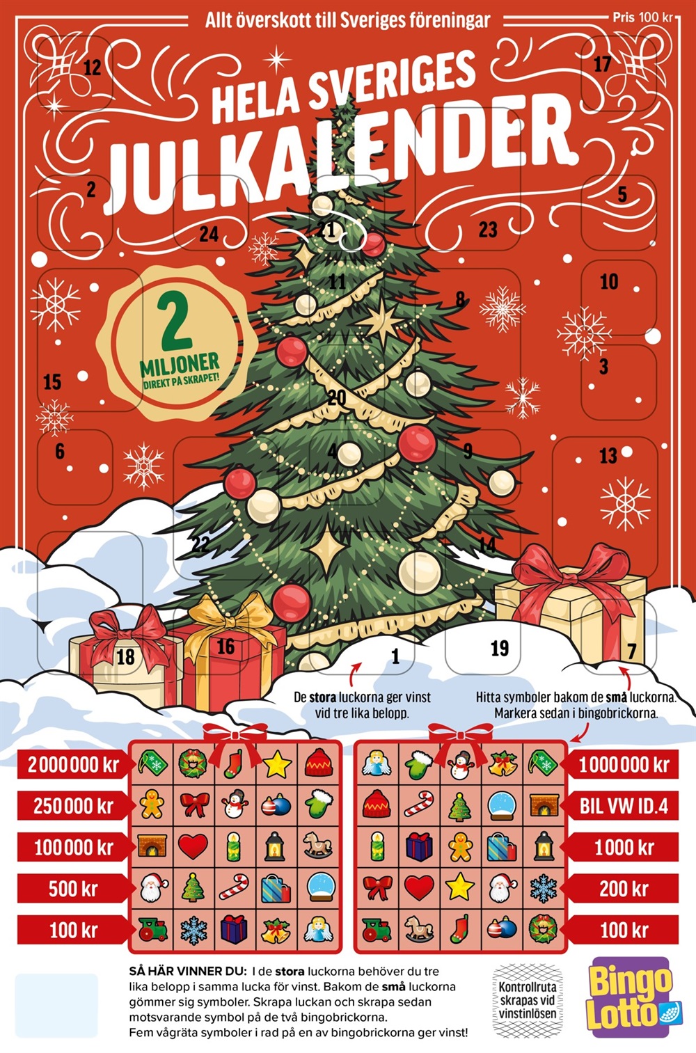 Bingolottos julkalender kostar 100 kronor och här går 35 kronor till lagkassan.